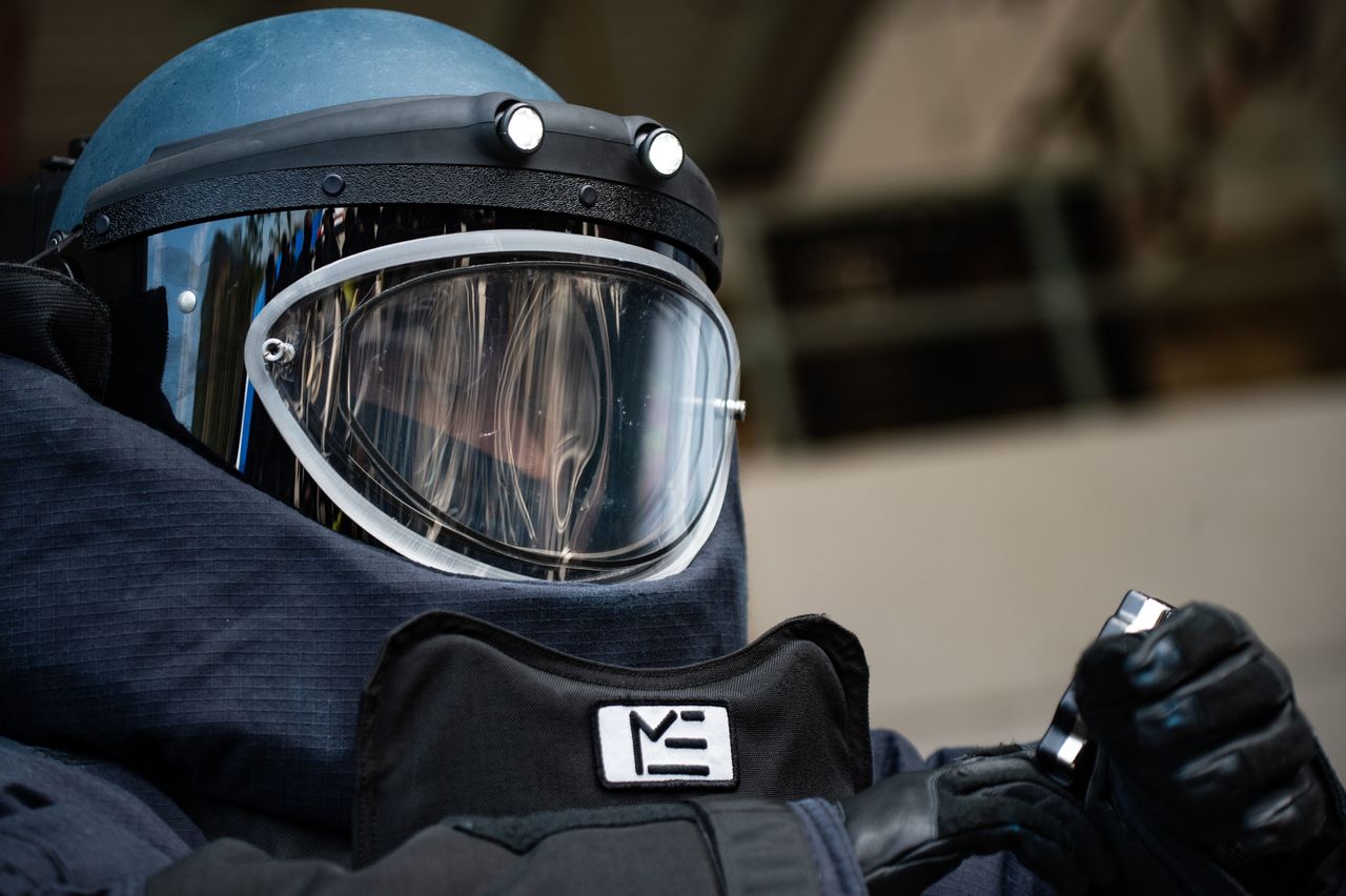 A police officer is seen wearing a bomb suit during a media tour of the Hong Kong Police Explosive Ordnance Disposal Bureau depot in Hong Kong on Dec 6, 2019.