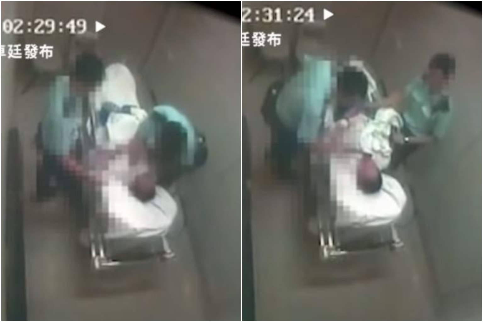 HONG KONG (AFP) - Two Hong Kong police officers were arrested on Tuesday (Aug 20) after a video emerged of them beating an older man on a hospital trolly, heaping further pressure on a force already facing accusations of brutality.