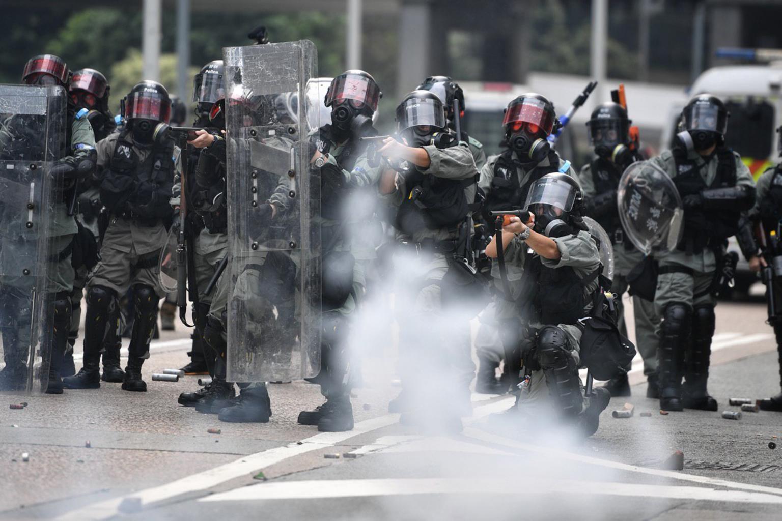 Hong Kong police firing rubber bullets and tear gas in Admiralty on Sept 29, 2019.