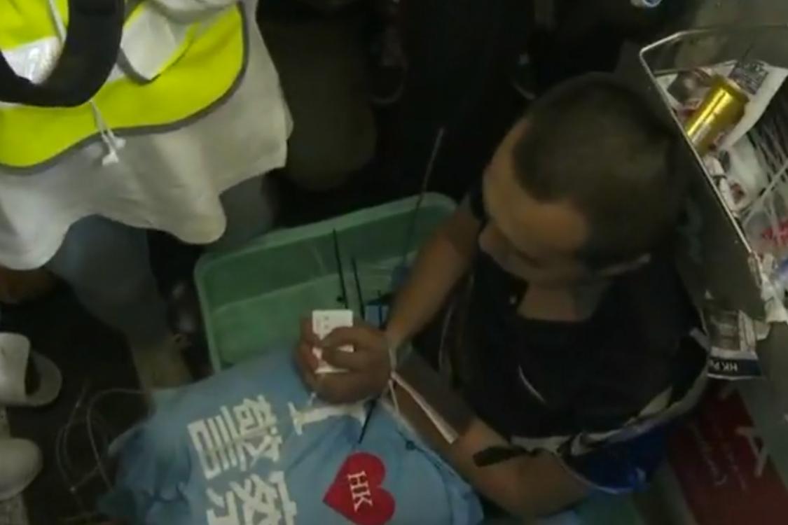 A T-shirt with a slogan supporting Hong Kong's police was found in his backpack and displayed with Mr Fu until volunteer medics in the crowd and then an ambulance crew eventually got to him.