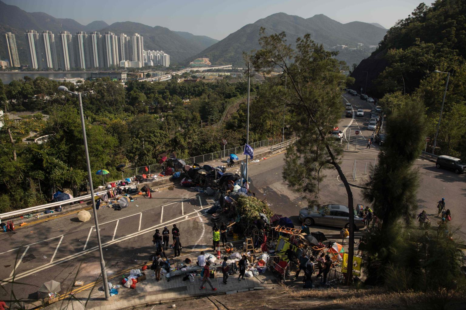 The hilly campus was the scene of violent clashes this week, with pro-democracy protesters hurling petrol bombs at police and on to a highway linking the largely rural New Territories with the Kowloon peninsula to the south and Hong Kong island beyond.