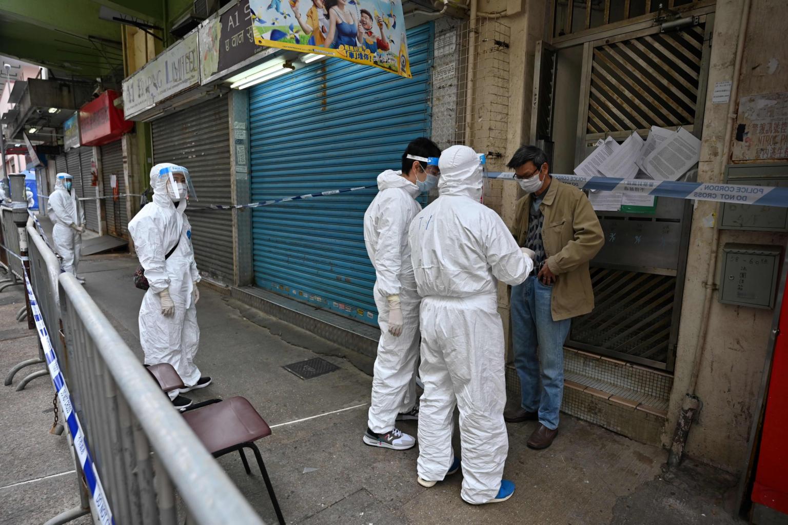 HONG KONG (BLOOMBERG) - Hong Kong health officials quarantined more than 80 residents of a building in a densely populated neighbourhood after a Covid-19 case detected there initially tested positive for a highly transmissible mutant strain.