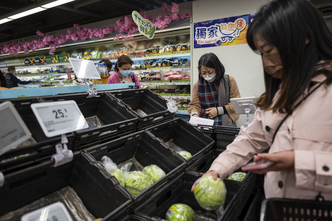 <p>Customers shop for produce at a supermarket in Hong Kong, Feb. 28, 2022. Vegetable prices have soared, but the Hong Kong government has offered limited cash relief. (Billy H.C. Kwok/The New York Times)</p>