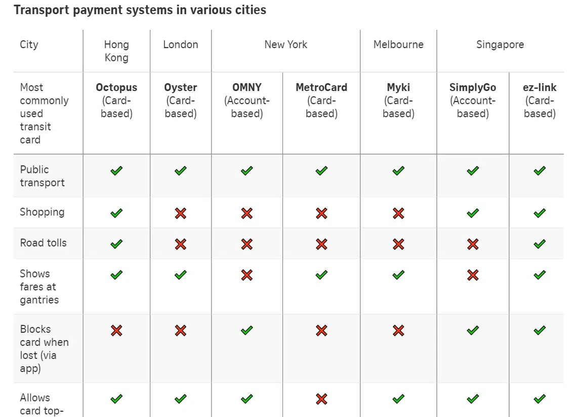 The question of how other cities balance between upgrading their transport payment systems and losing functions such as the ability to reflect fare balances instantaneously has been debated in Singapore.