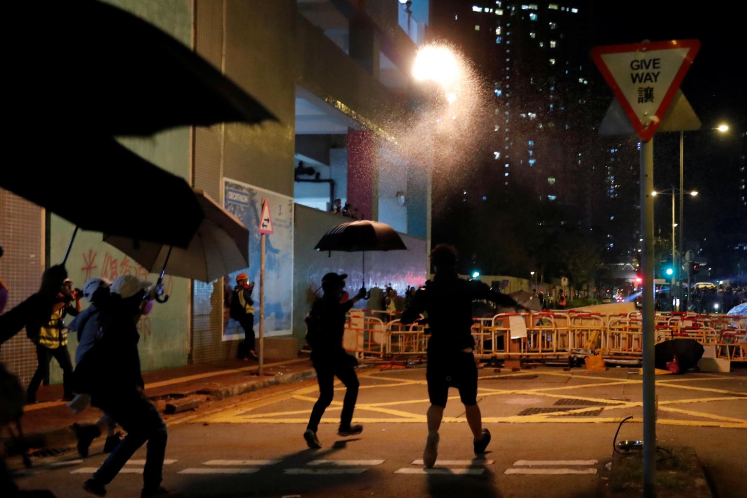 Protesters in Tseung Kwan O, Hong Kong, on Nov 6, 2019. Mr Chow Tsz Lok's death is expected to spark fresh protests and fuel anger and resentment against the police, who are already under pressure amid accusations of excessive force.
