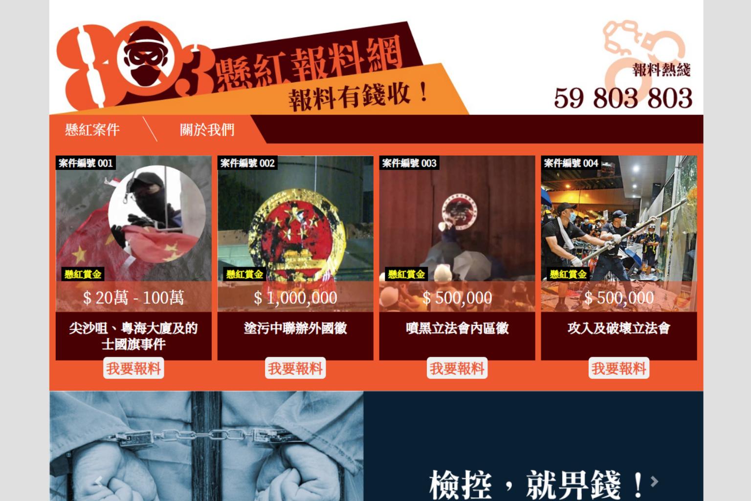 The 803.hk website has 30 different incidents - sorted by protest dates - where members of the public can offer tip-offs for HK$500,000 rewards if they result in successful prosecutions.