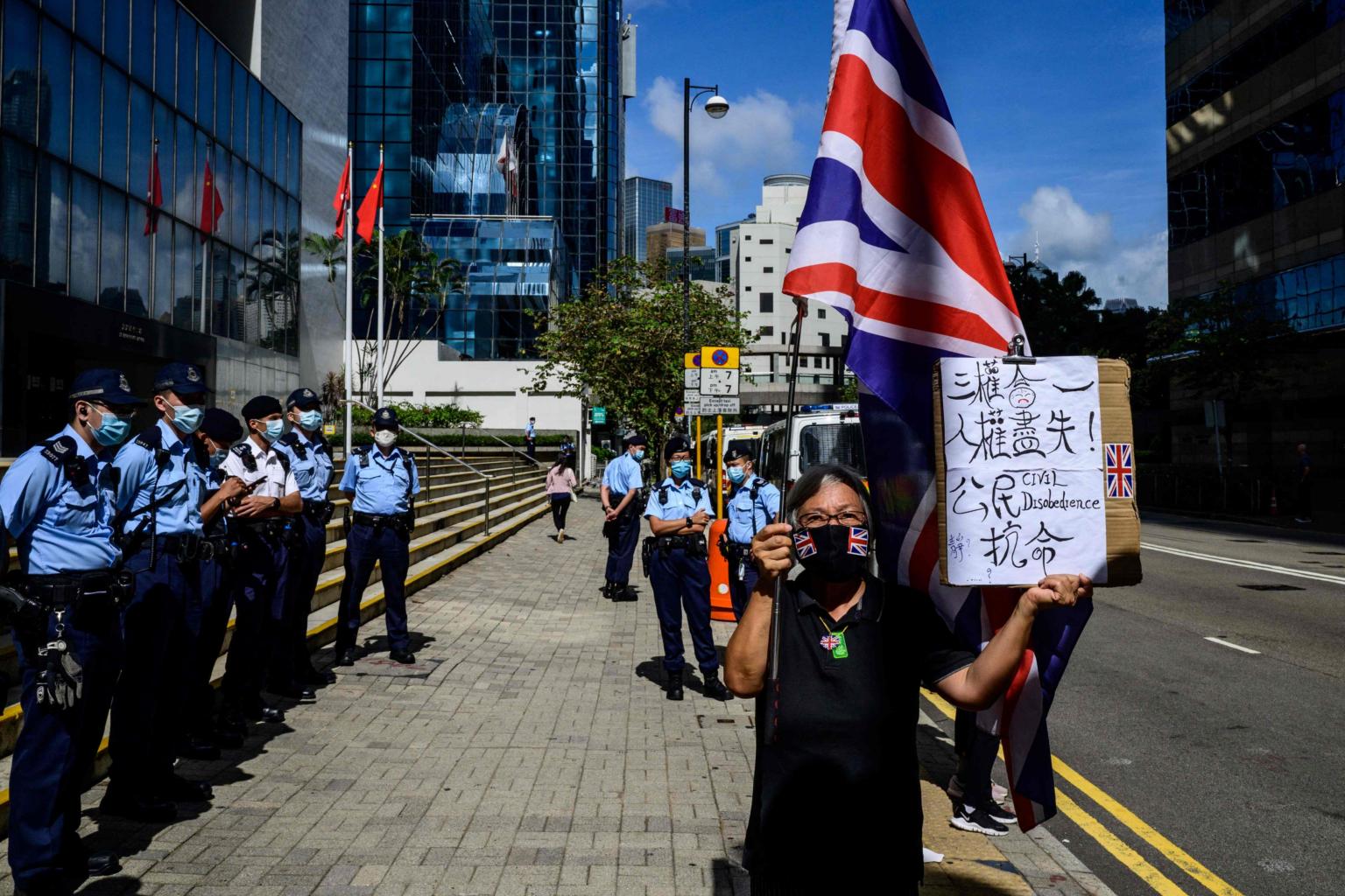 She could often be seen waving a Union Jack flag, a symbol of her dissatisfaction with Beijing's rule since the city was handed to China by former colonial power Britain in 1997. Protest is now all but outlawed in Hong Kong.