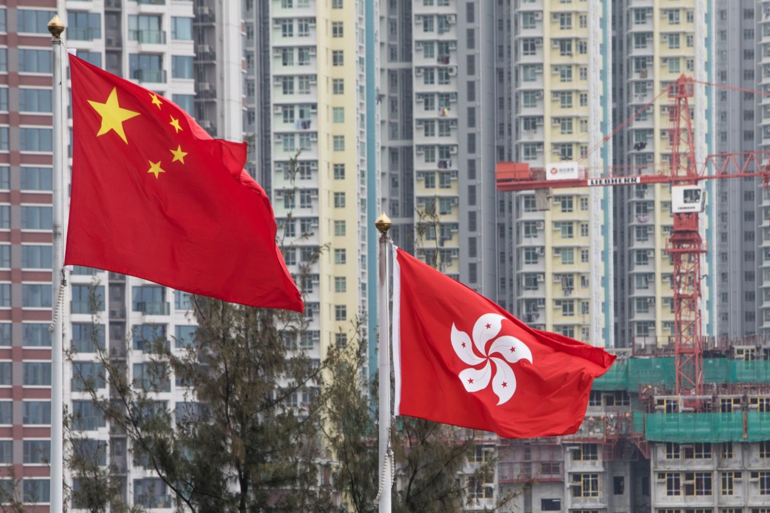 Flags of China (left) and Hong Kong fluttering in front of a residential building at the former Kai Tak airport area in Hong Kong, on May 26, 2017.