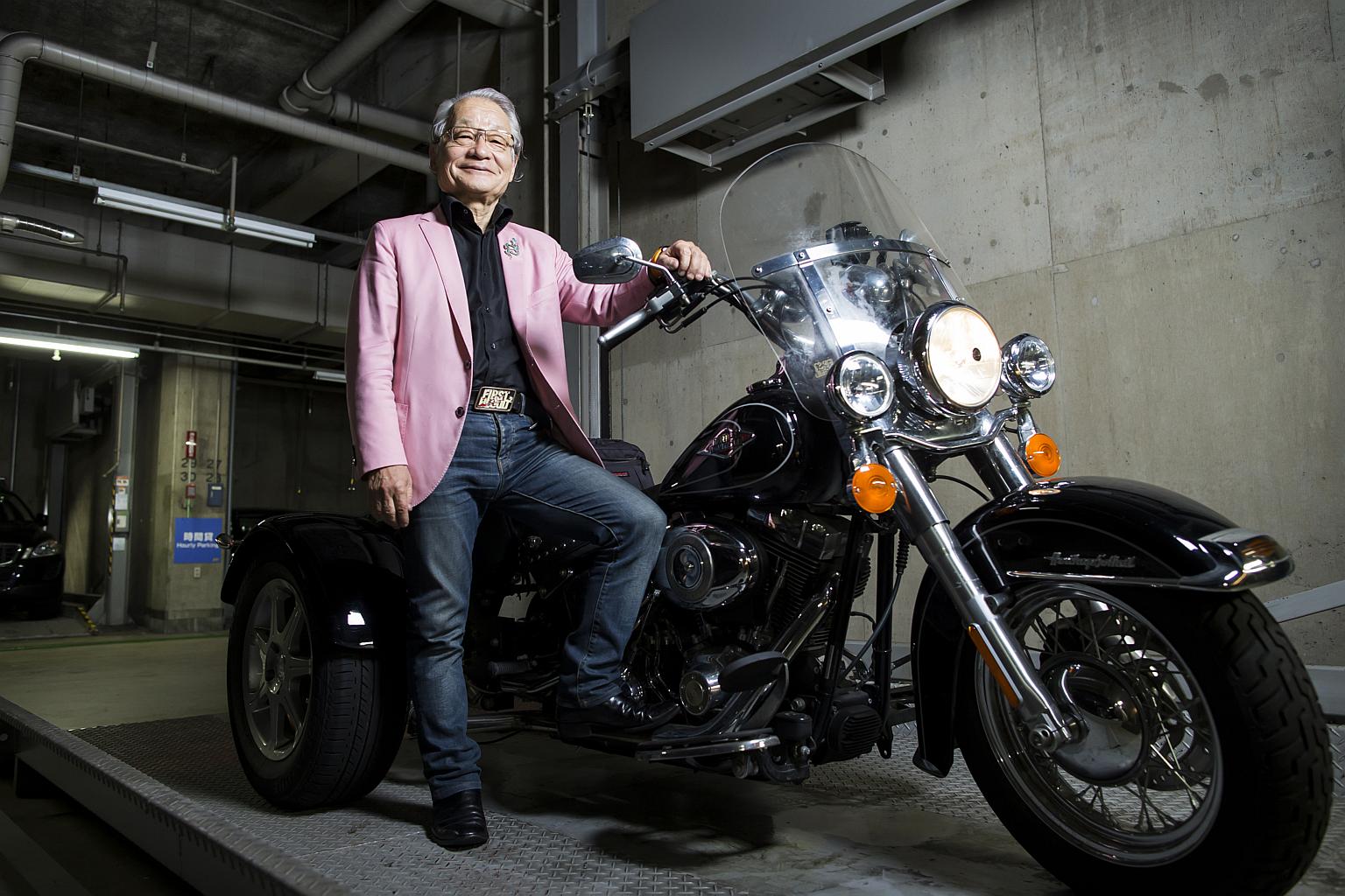 Lawyer Hiroyuki Kawai posing with his Harley-Davidson Trike motorcycle inside a garage in Tokyo, on July 25, 2017.