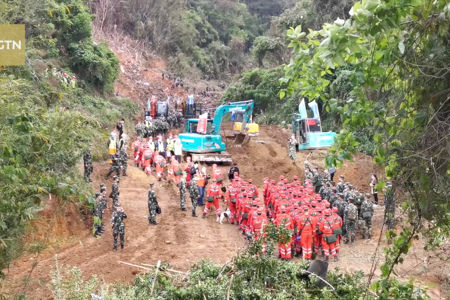 Rescuers working at the site where China Eastern flight MU5735 crashed in Wuzhou, Guangxi, on March 22, 2022.