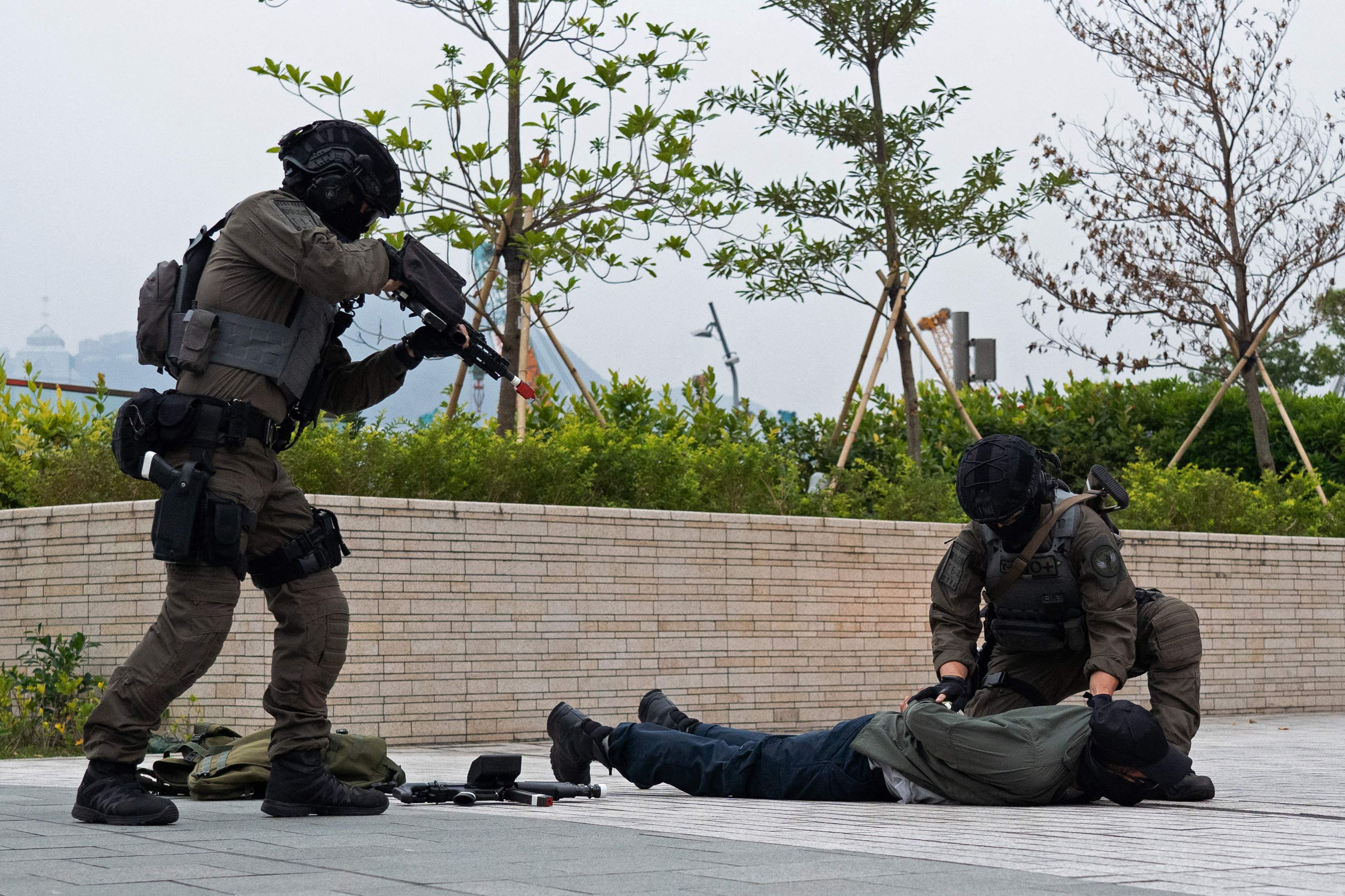 The Counter Terrorism Response Unit in an inter-departmental counter-terrorism exercise in Hong Kong on Nov 19, 2021.