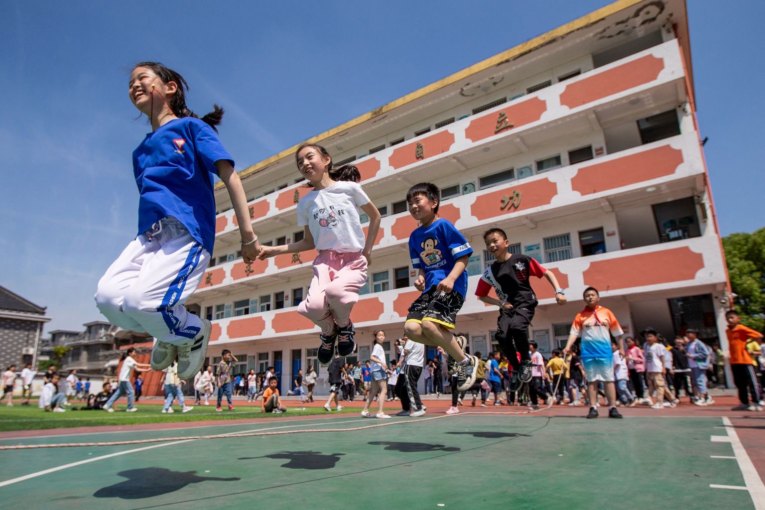 Students play on International Children's Day in Haian, eastern Jiangsu province, China on June 1, 2021.