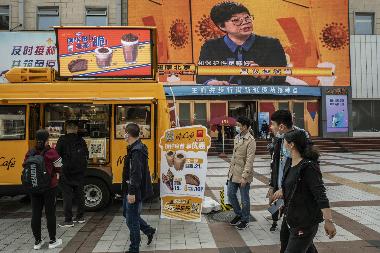 A McDonald’s ice cream truck outside a vaccination centre in Beijing, on April 6, 2021.