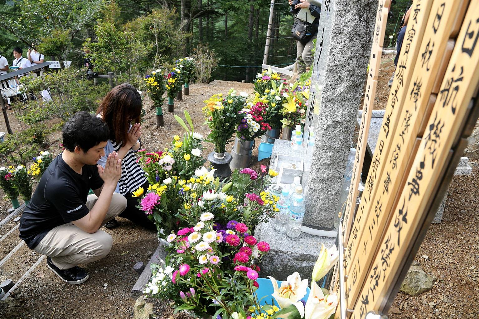 Relatives of victims of the Japan Airlines (JAL) Flight 123 crash offer prayers at a memorial for the 30th anniversary of the accident on Aug 12, 2015.