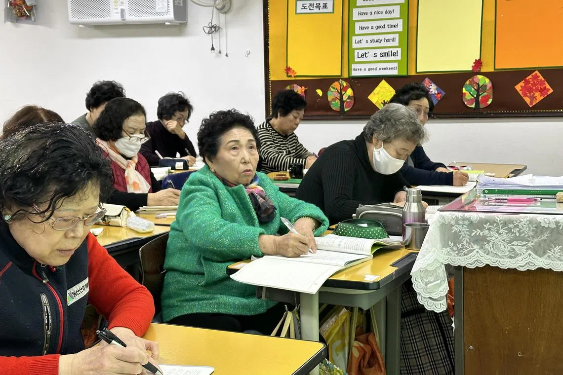 At Ilsung Women’s Middle and High School, almost 90 per cent of the students are in their 70s and 80s.