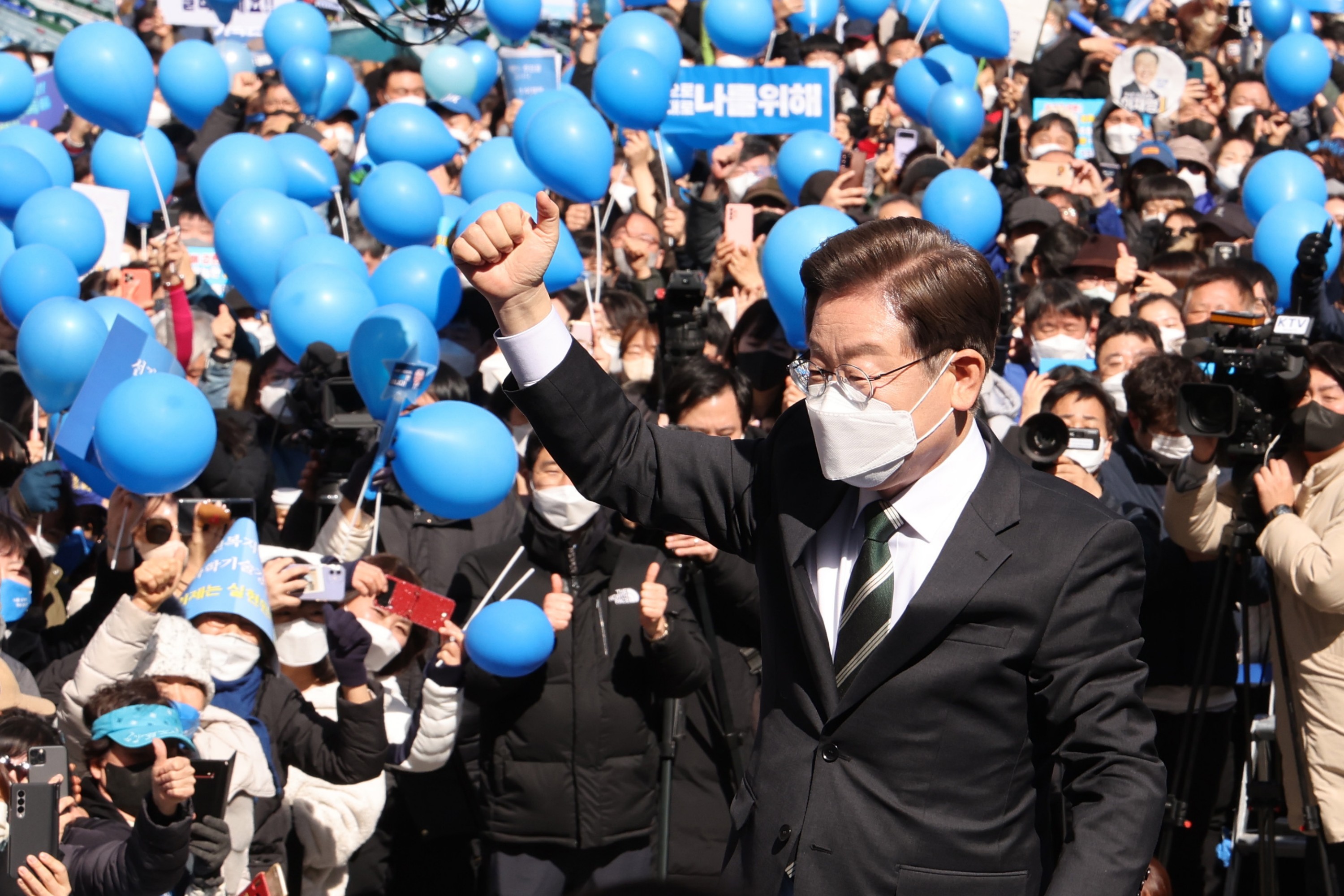 Democratic Party's presidential candidate Lee Jae-myung at a campaign stop in Seongnam, just south of Seoul, South Korea, on March 5, 2022.