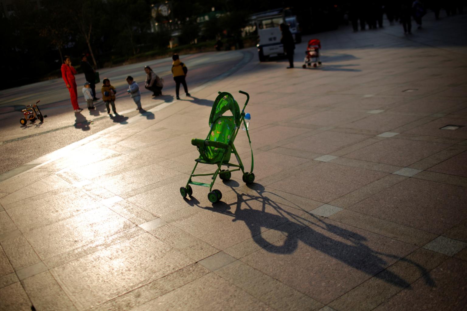 <p>People push baby strollers along a business street in Beijing on July 13, 2021. (Photo by WANG Zhao / AFP)</p>