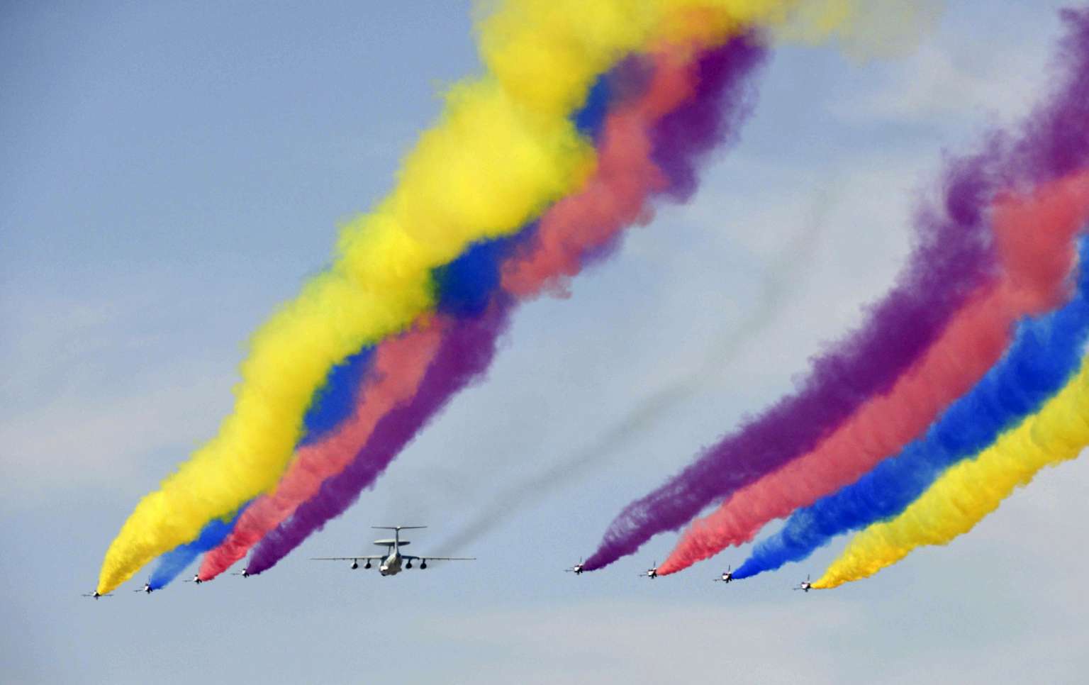 Military aircraft forming the number 70 during the military parade marking the 70th anniversary of the end of World War II, in Beijing, China, on Sept 3, 2015.
