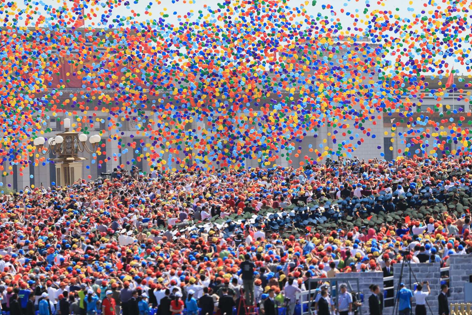 Balloons being released at Tiananmen Square at the end of the military parade marking the 70th anniversary of the end of World War II, in Beijing, China, on Sept 3, 2015.