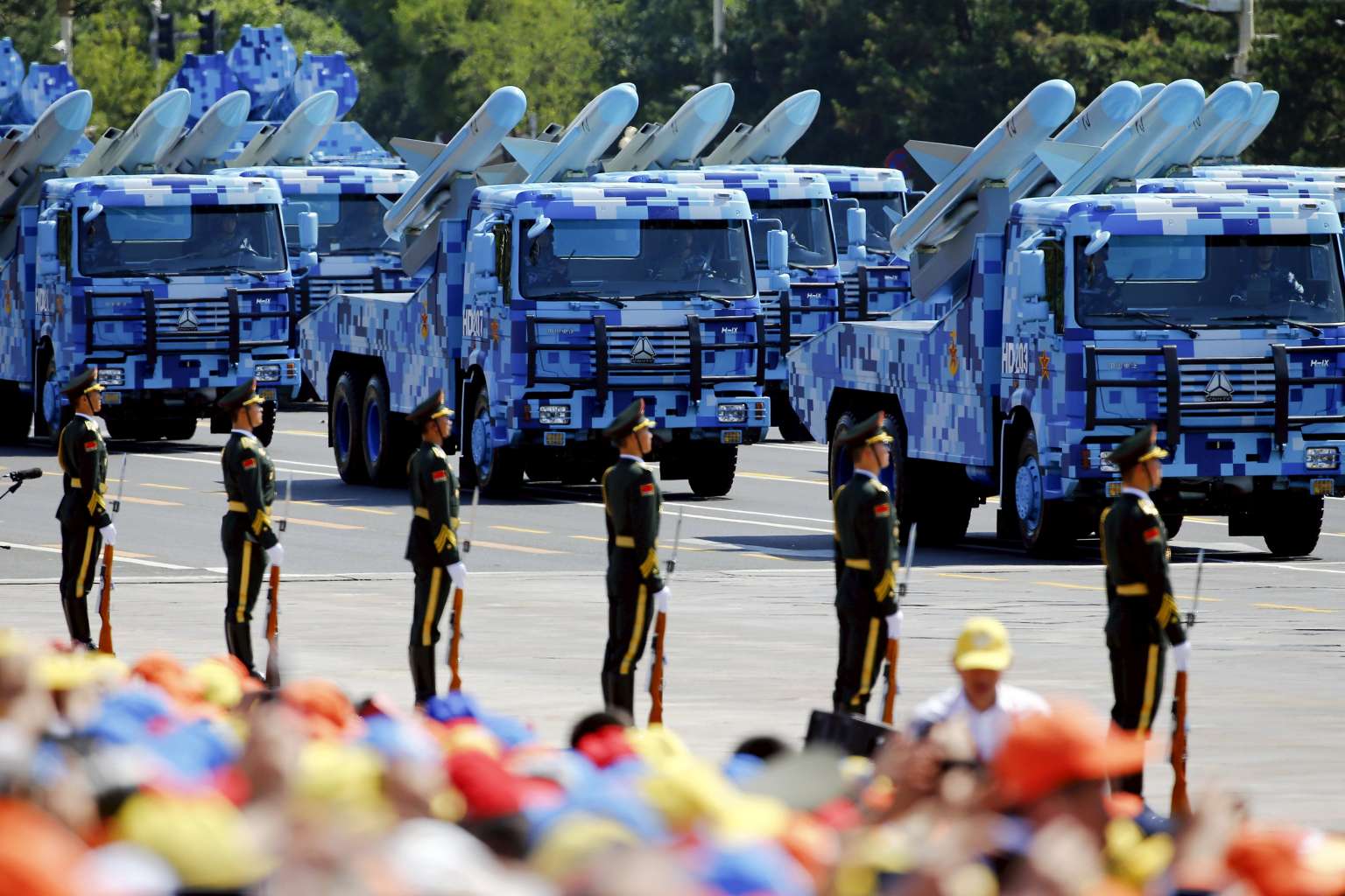China's People's Liberation Army (PLA) navy soldiers on their armoured vehicles carrying ship-to-air missiles roll to Tiananmen Square during the military parade marking the 70th anniversary of the end of World War II, in Beijing, China, on Sept 3, 2015.