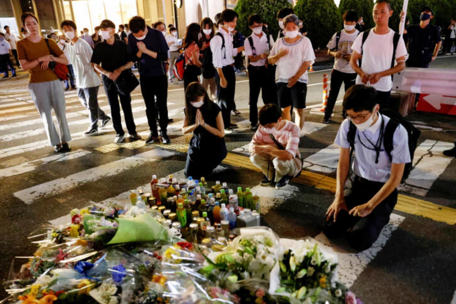 According to eyewitness accounts, the first gun shot was heard when a man approached Mr Abe from behind. Then a second shot was heard, at which point he fell to the ground.