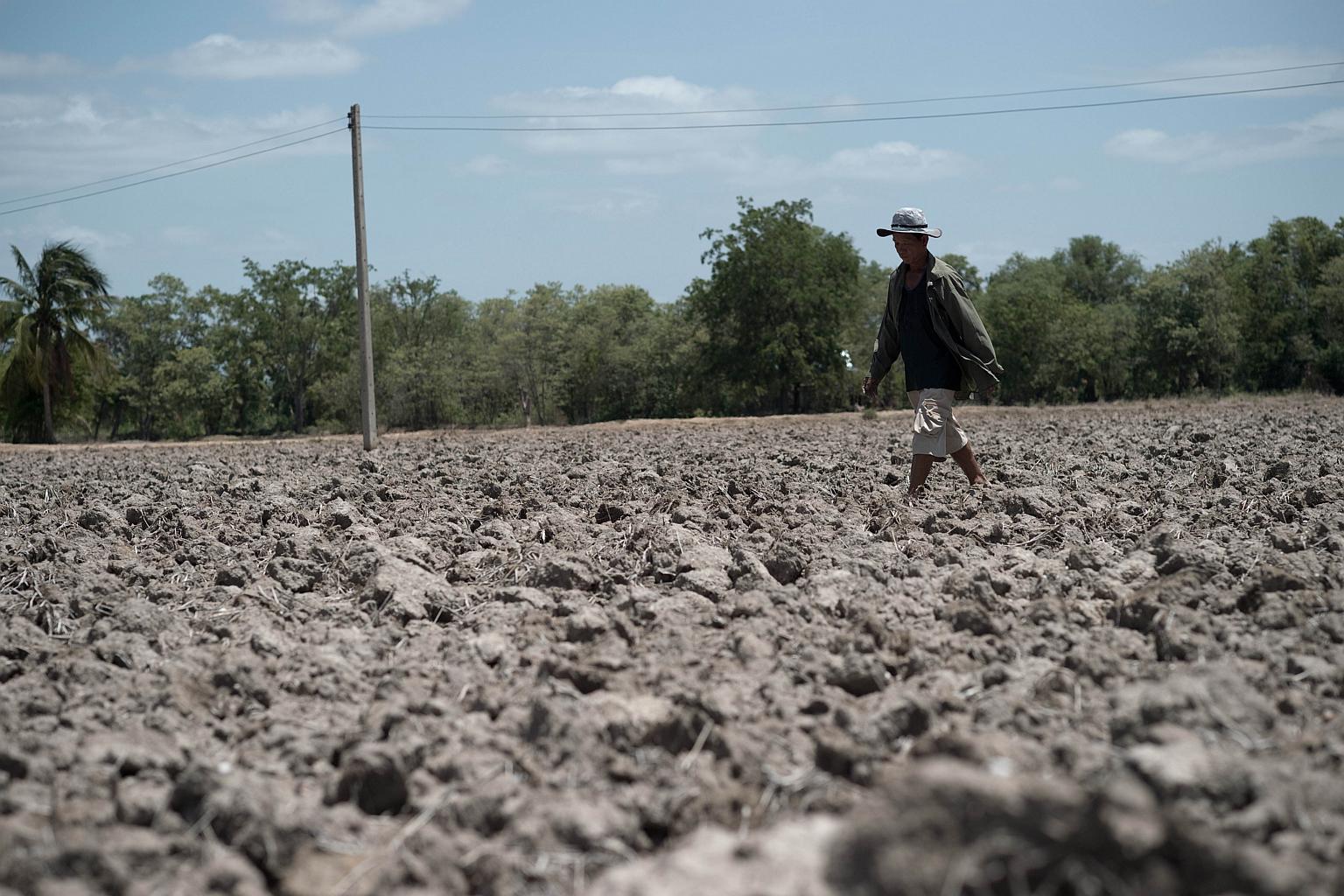A Thai farmer walking in a dried-out field, in Bang Pla Ma district, Suphanburi province on July 2, 2015.