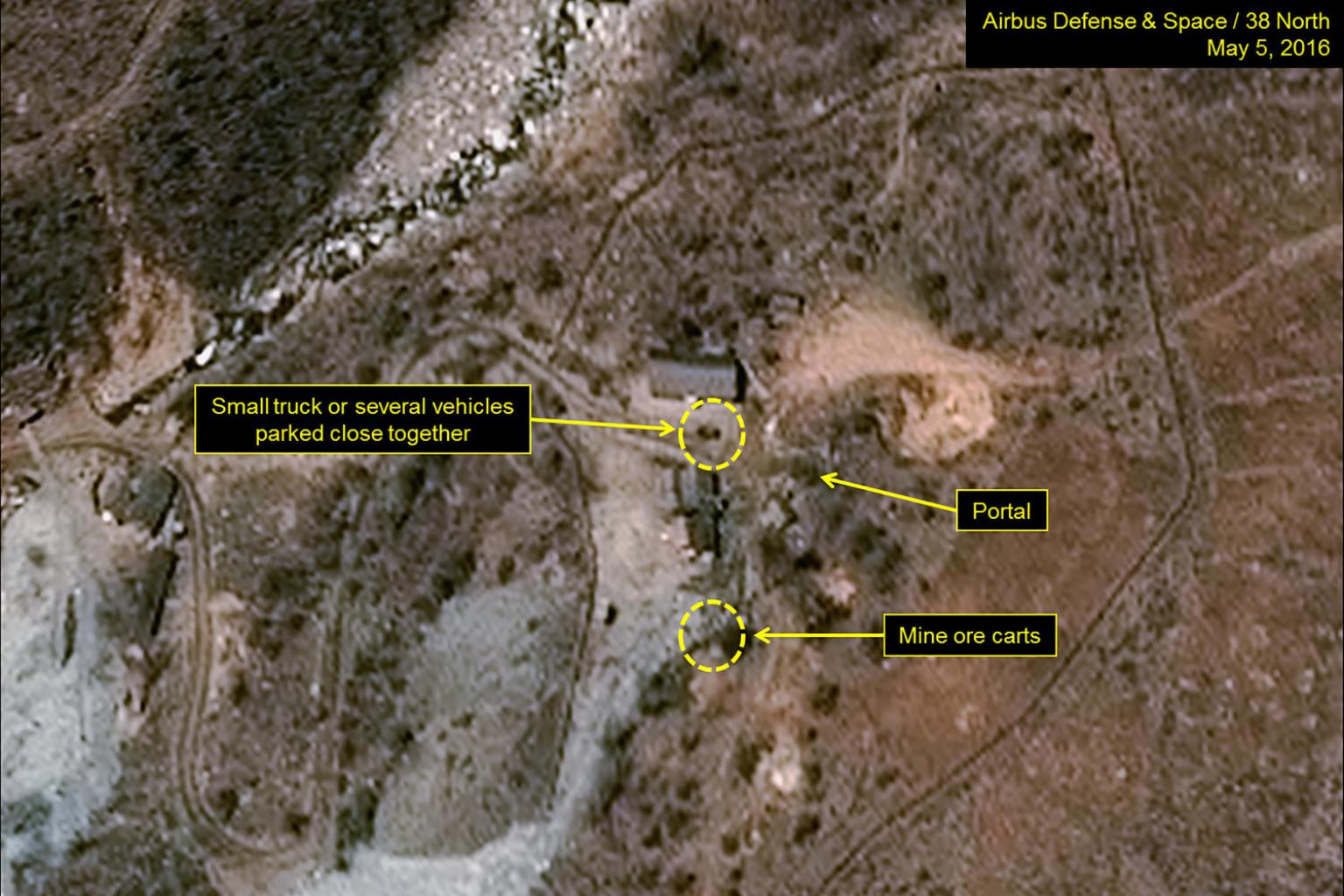 The Punggye-ri test site in North Korea is seen in an image from Airbus Defense and Space and 38 North taken May 5.