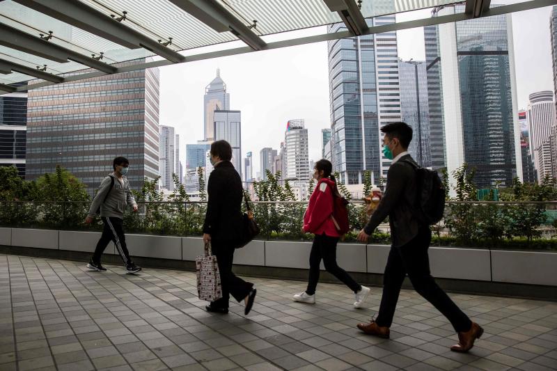People walking across a footbridge that leads to government offices in Hong Kong on March 2, 2020. Political watchers say the decision will hinge on several factors, including the role of Hong Kong in US interests and if China's promise of 'one country, two systems' has been breached.