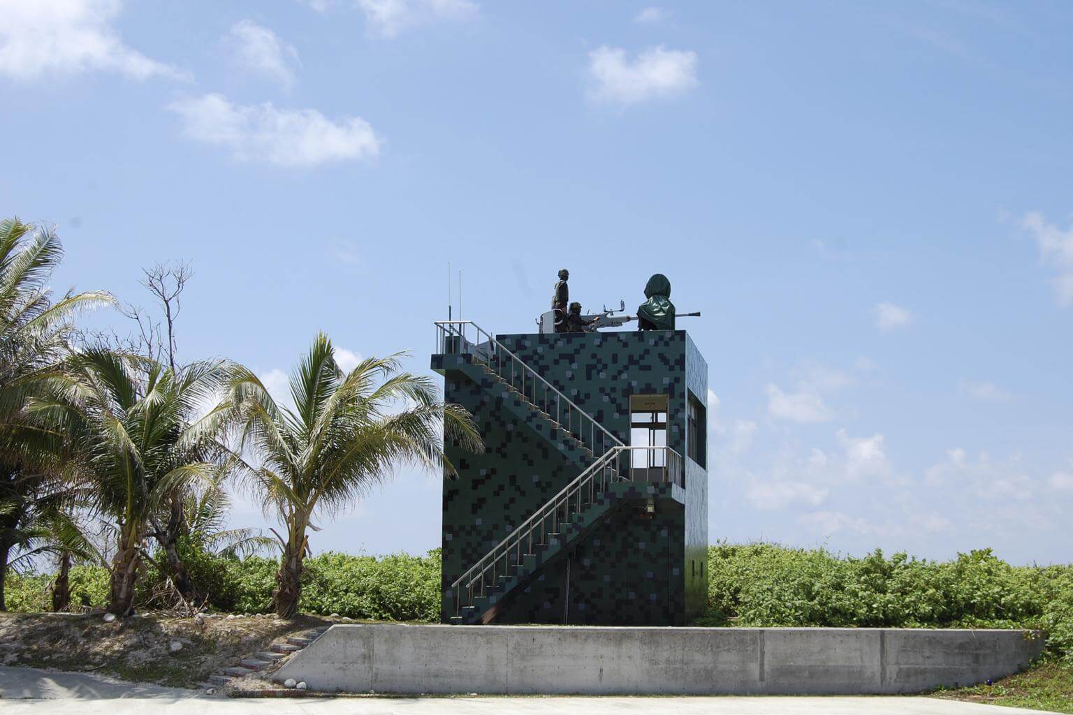 Taiwanese soldiers on guard at the edge of the runway on Itu Aba on May 10, 2018.