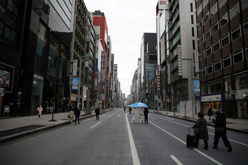 People walking on Ginza Boulevard which is closed for vehicles during the weekend, in Tokyo, Japan, on March 7, 2020.