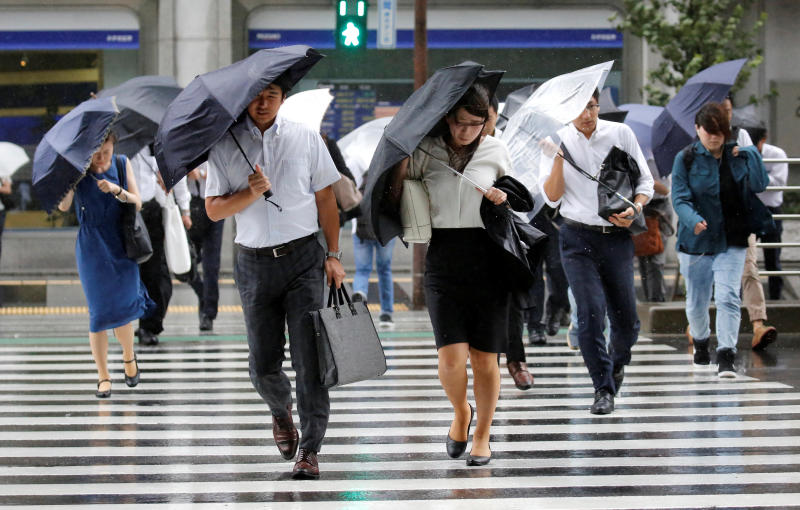 The storm comes as some 27,000 people in Nagato in western Japan were temporarily ordered to evacuate their homes on Saturday due to torrential rain.