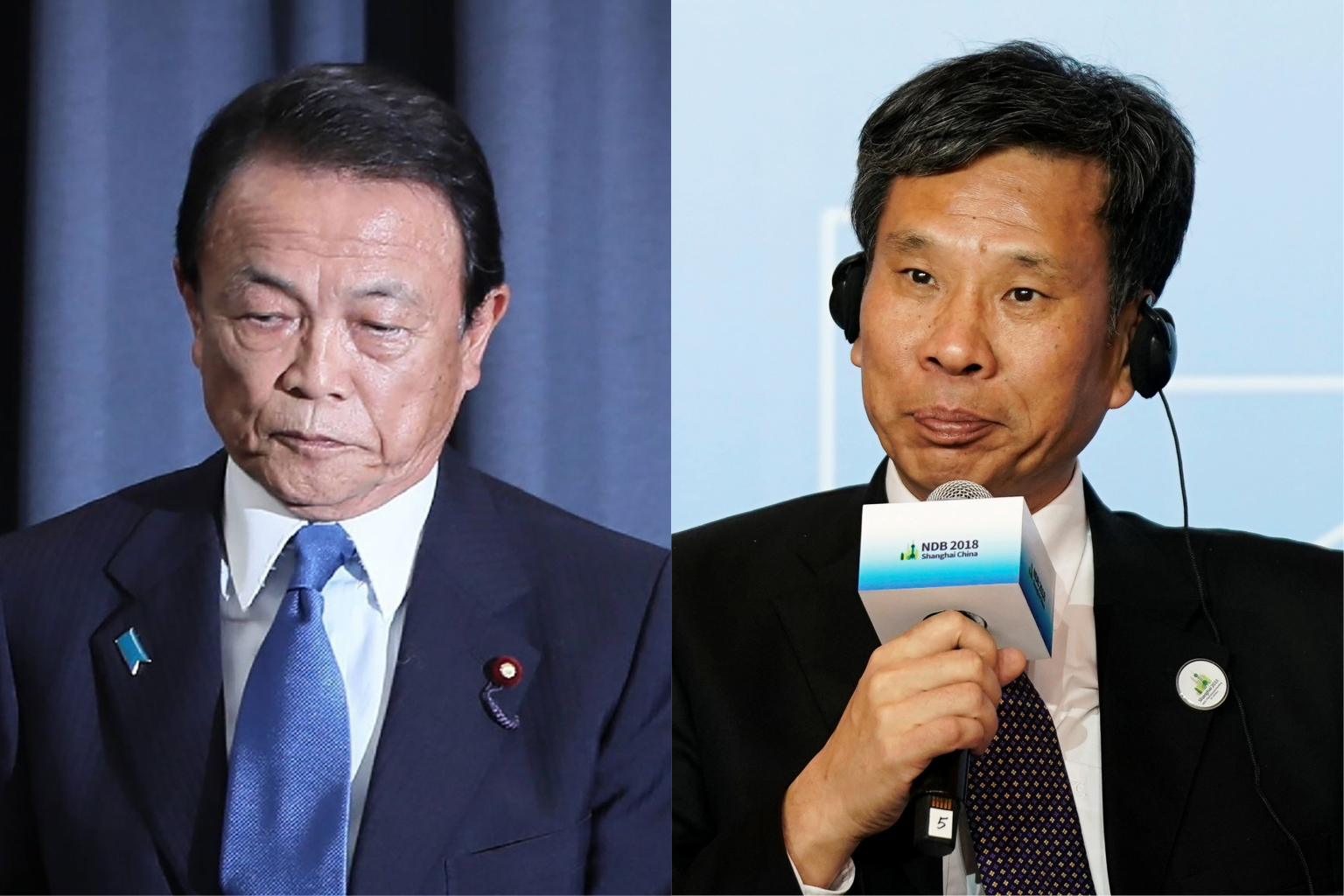 Japanese Finance Minister Taro Aso (left) and Chinese counterpart Liu Kun are expected to discuss financial cooperation, a sign that ties are improving amid Sino-US trade tensions.