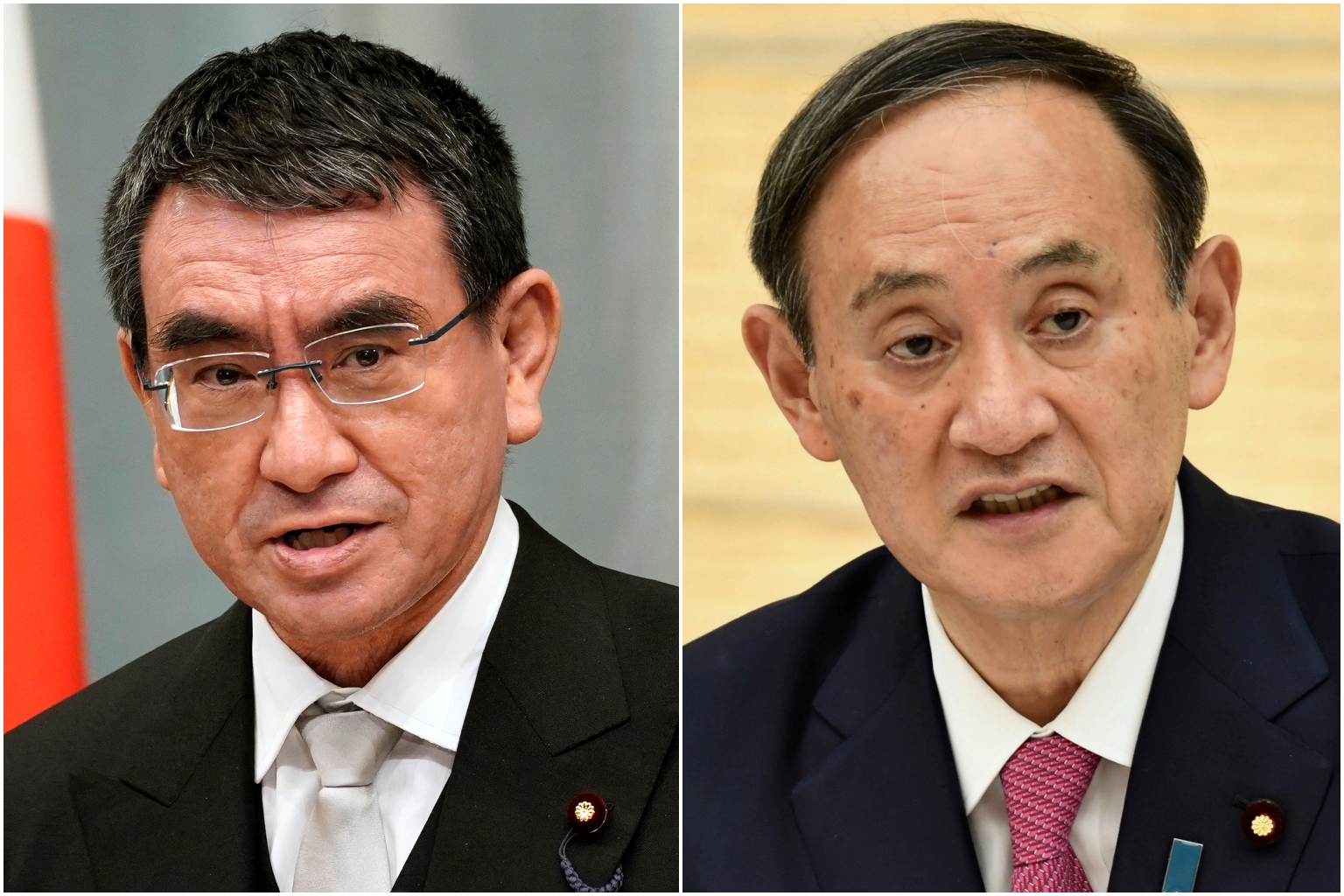 Polls show Taro Kono left) is already voters' favourite for premier, an ominous sign for Yoshihide Suga.