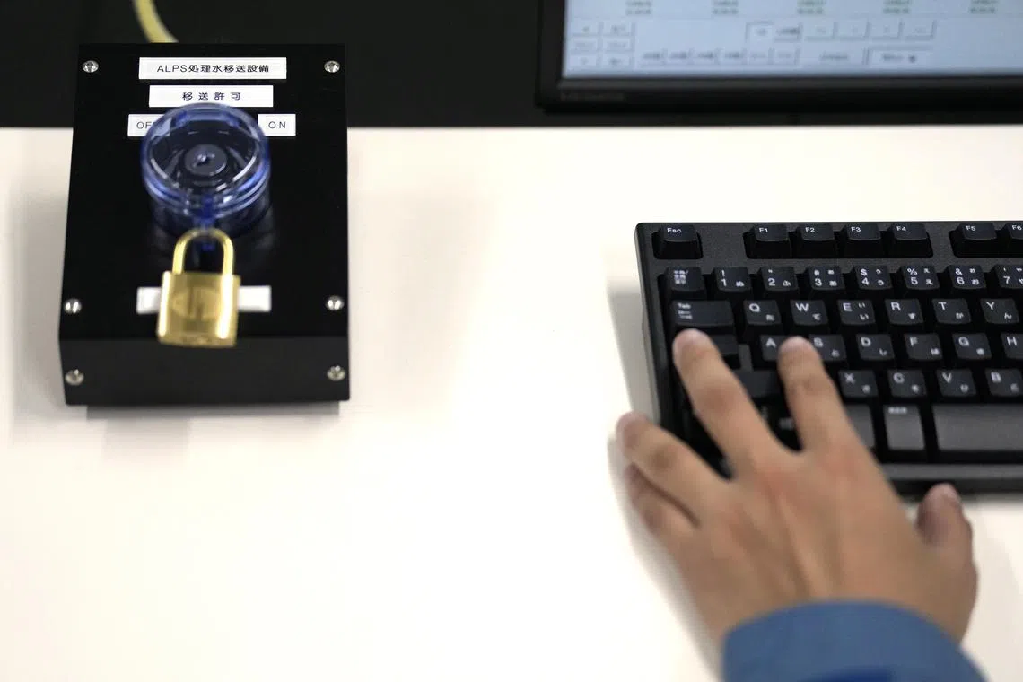 A treated water transfer switch, kept under lock-and-key, at a central monitoring room at the Fukushima Daiichi nuclear power plant, on Aug 27.