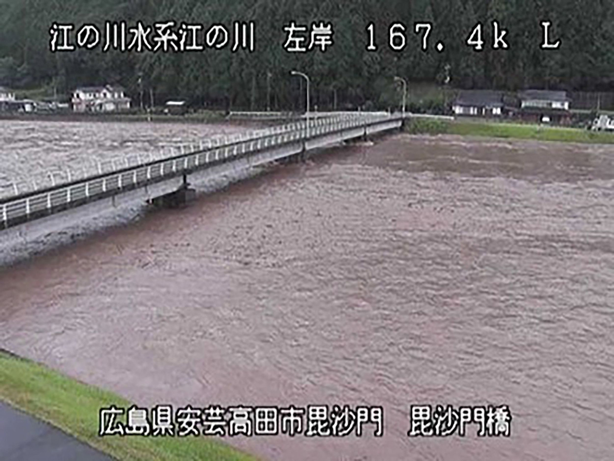 A video grab showing the Gonokawa river's water level that rose due to heavy rain in Hiroshima prefecture, on Aug 13, 2021.