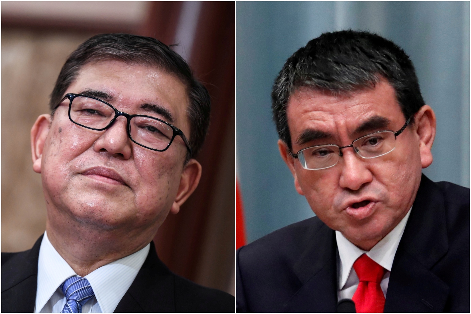 Mr Shigeru Ishiba is reportedly considering supporting Mr Taro Kono (right) in the race to replace Japan's prime minister.
