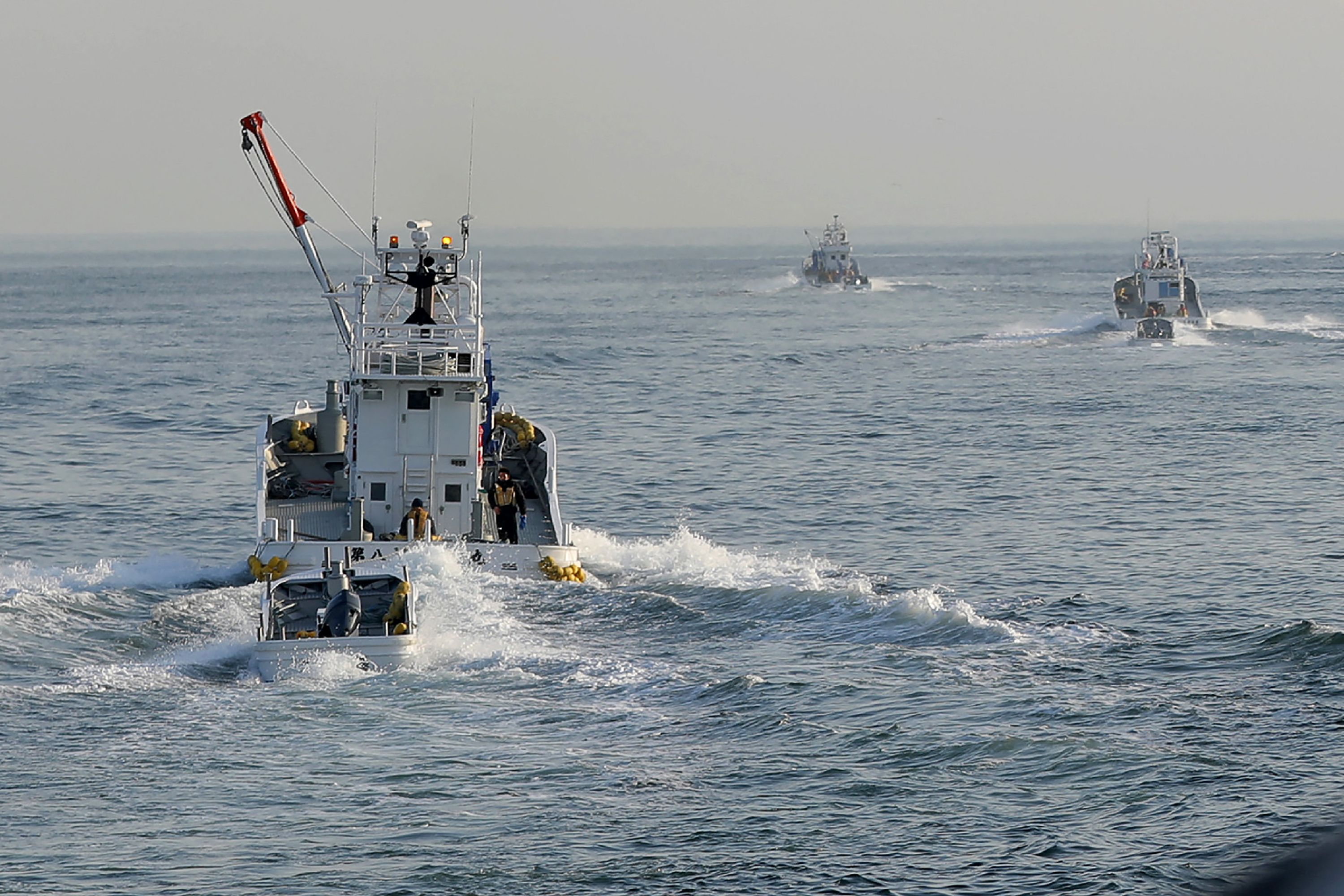 Fishing boats searching for the Kazu I after it sank off Hokkaido, killing at least 14 people on board.