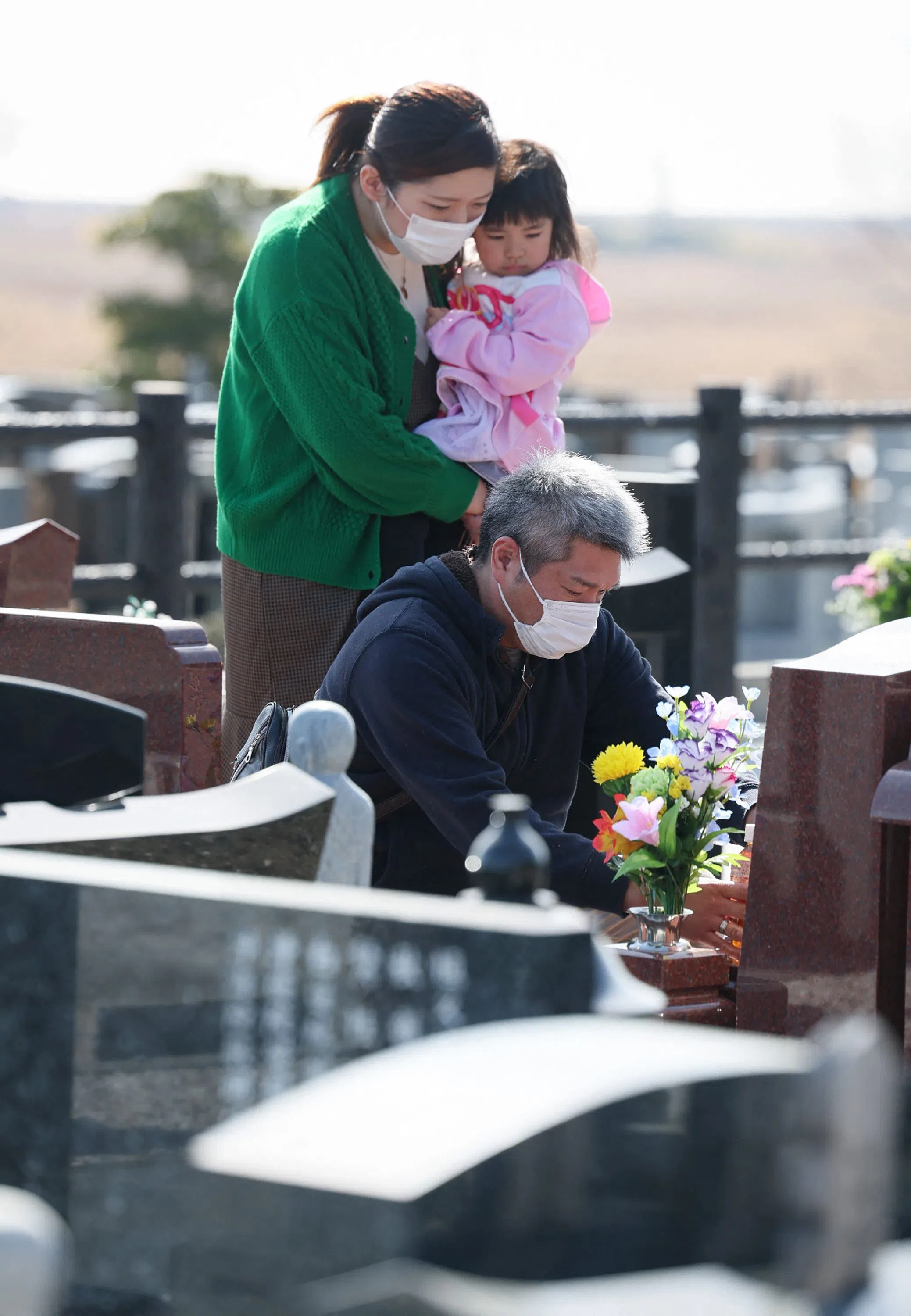 People visit a cemetery at Namie town of Fukushima Prefecture on March 11, 2023.