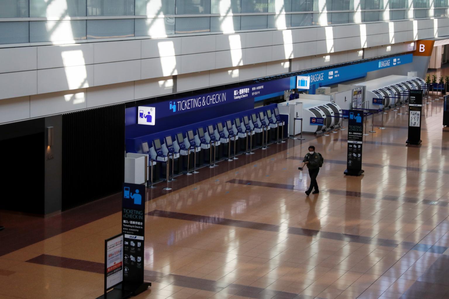 A man makes his way through the departure terminal of Haneda Airport in Tokyo on April 29, 2020.