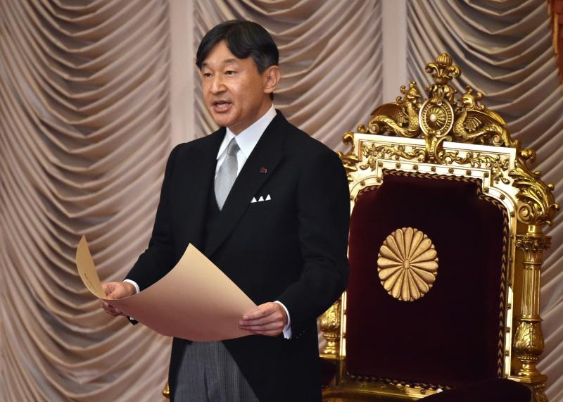 Japan's Emperor Naruhito delivers a speech at the Diet building in Tokyo, Japan, on Aug 1, 2019.