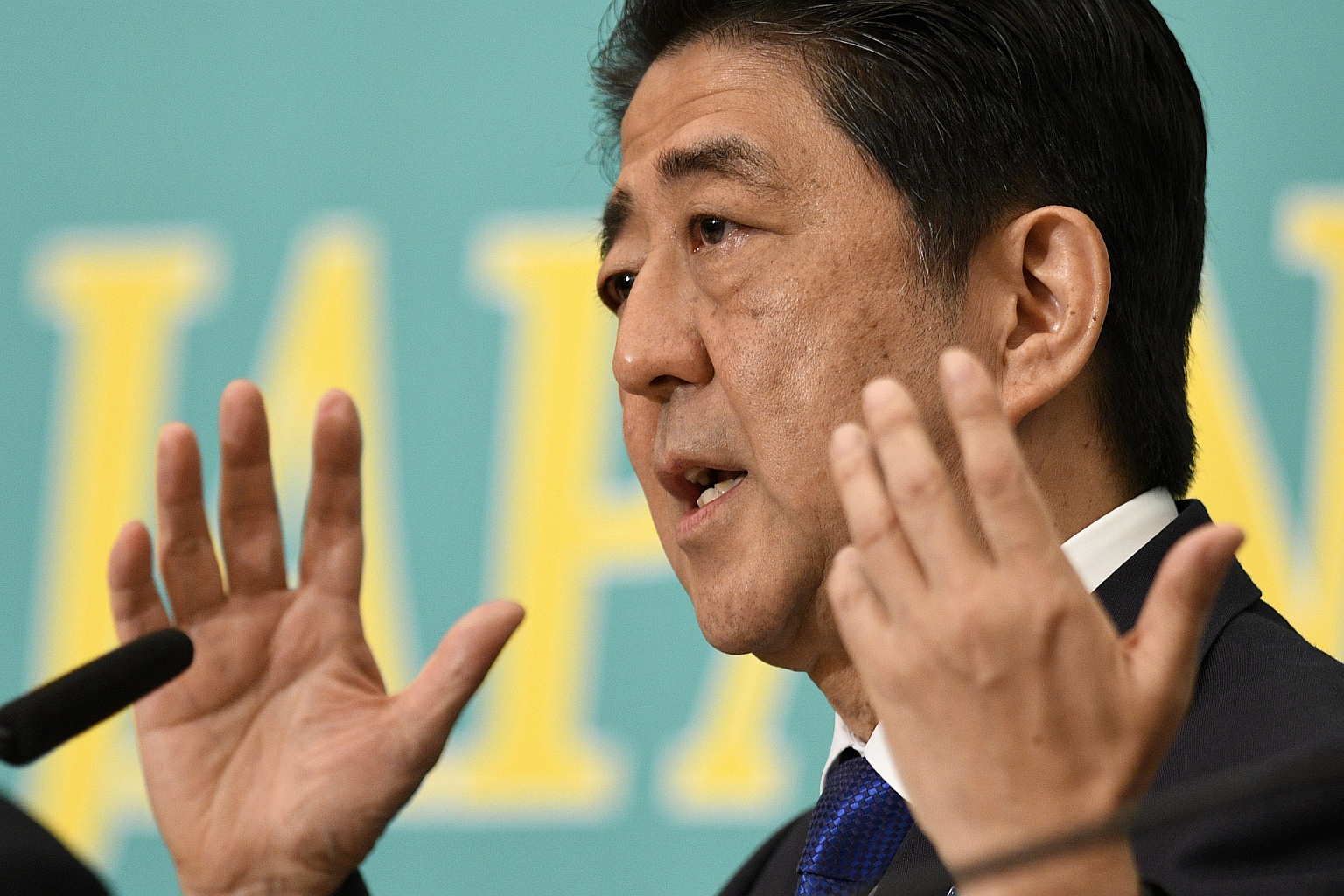 Shinzo Abe speaks during a party leaders' debate at Japan National Press Club in Tokyo.