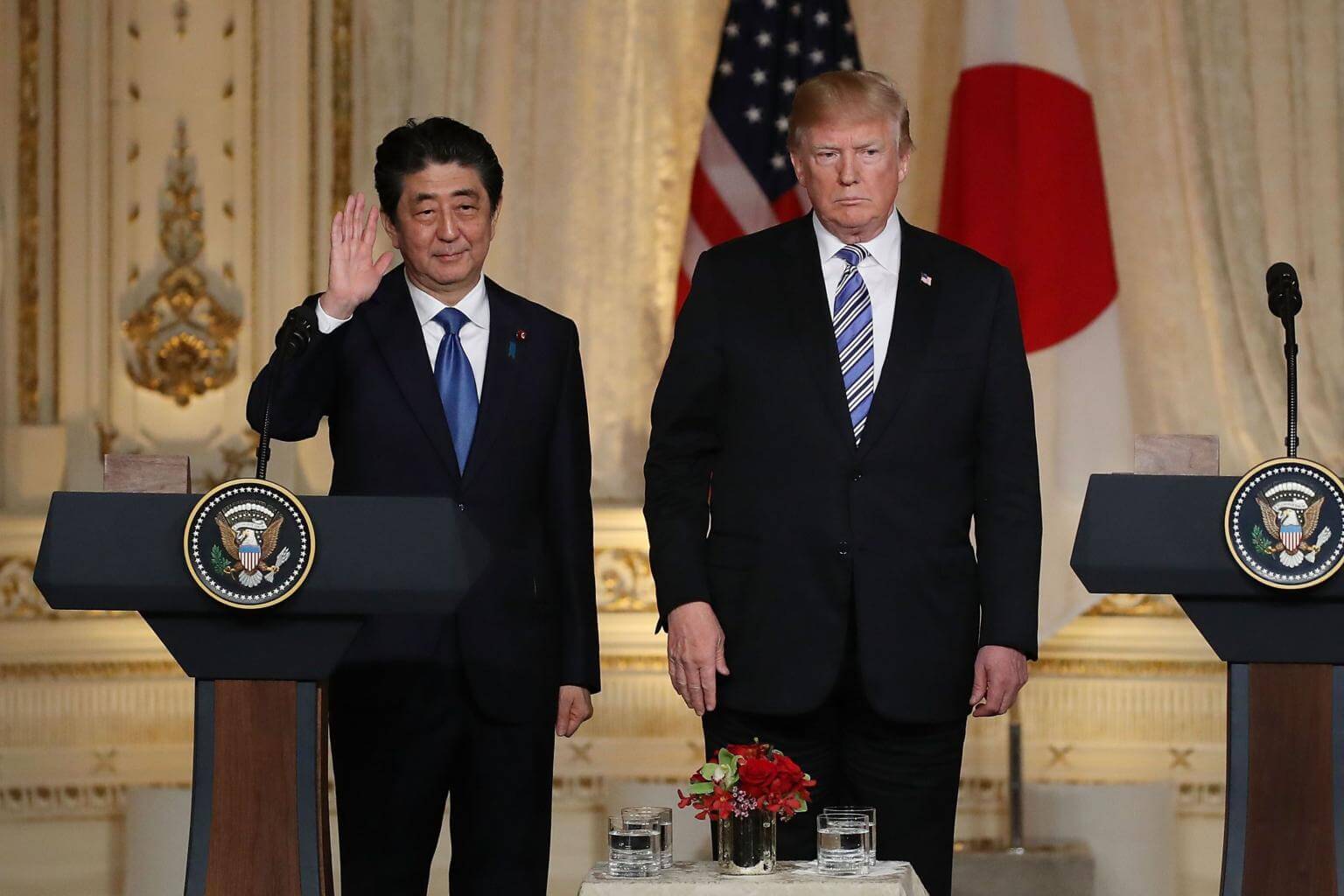 US President Donald Trump (right) and Japanese Prime Minister Shinzo Abe spoke in a 30-minute phone call on April 28 and agreed on the importance of concrete steps towards denuclearisation by Pyongyang.