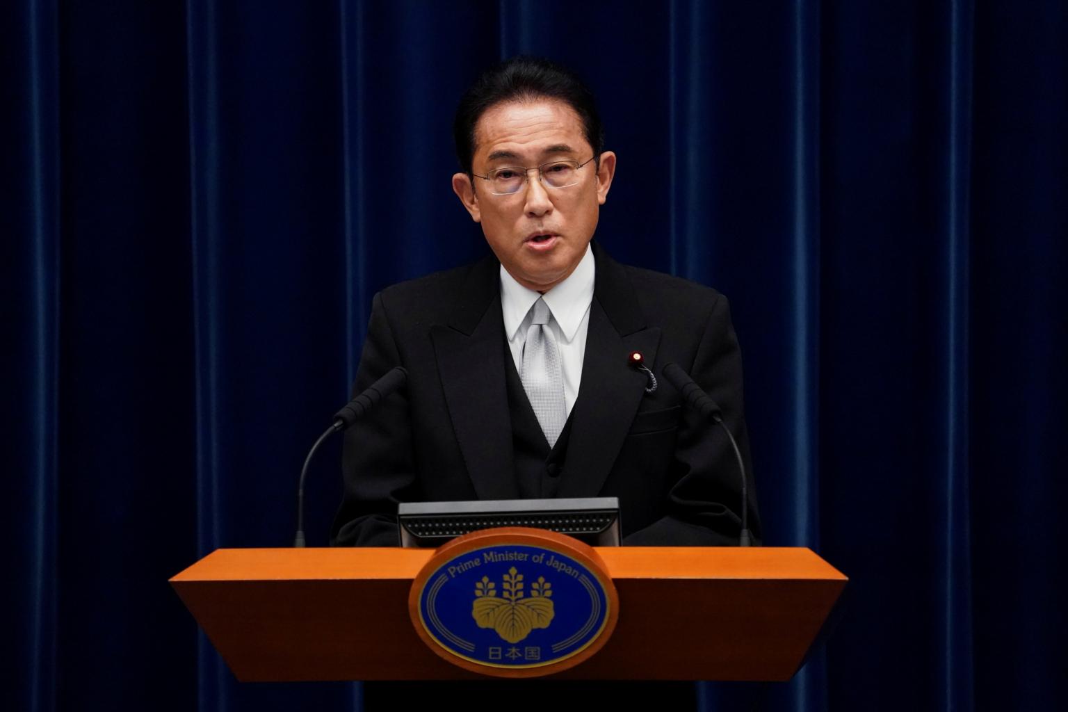 Japanese Prime Minister Fumio Kishida during a news conference at the prime minister's official residence in Tokyo on Oct 4, 2021.