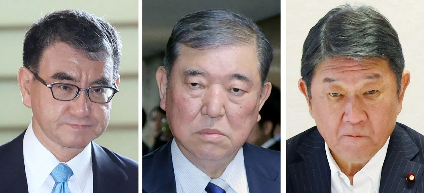 (From left) Mr Taro Kono, Mr Shigeru Ishiba, and Mr Toshimitsu Motegi.