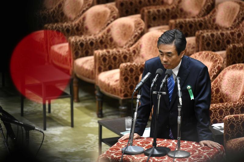 Tadao Yanase, former secretary to Prime Minister Shinzo Abe, answers questions during a parliament session in Tokyo on May 10, 2018.