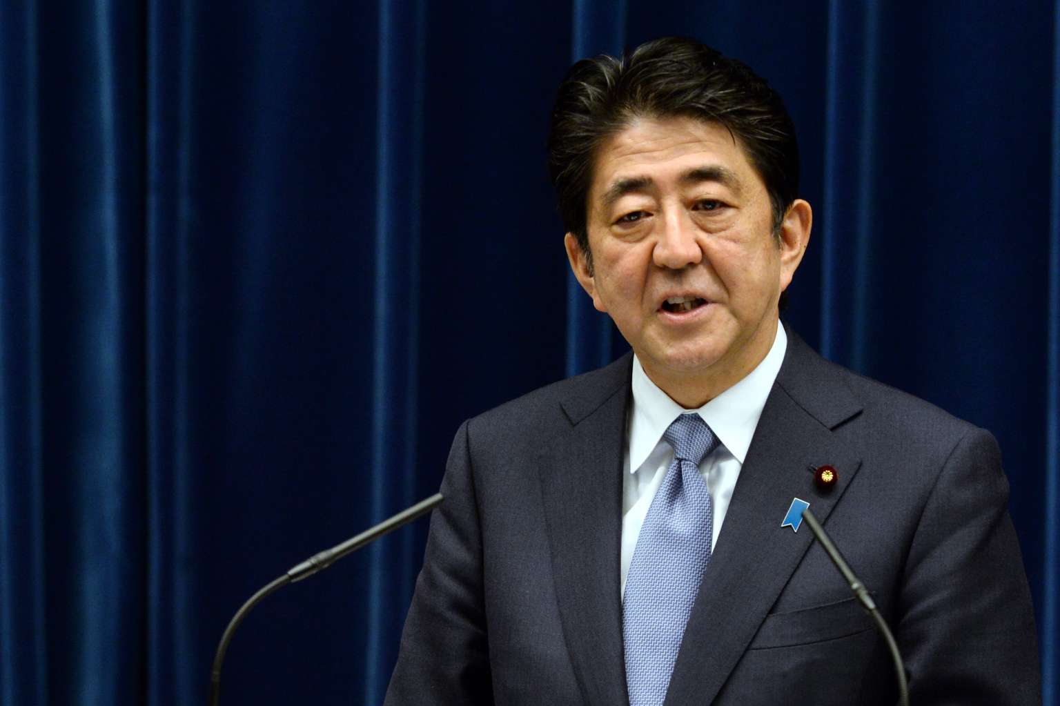 Japan's prime minister Shinzo Abe during a news conference at the prime minister's official residence in Tokyo, Japan on Aug 14, 2015.