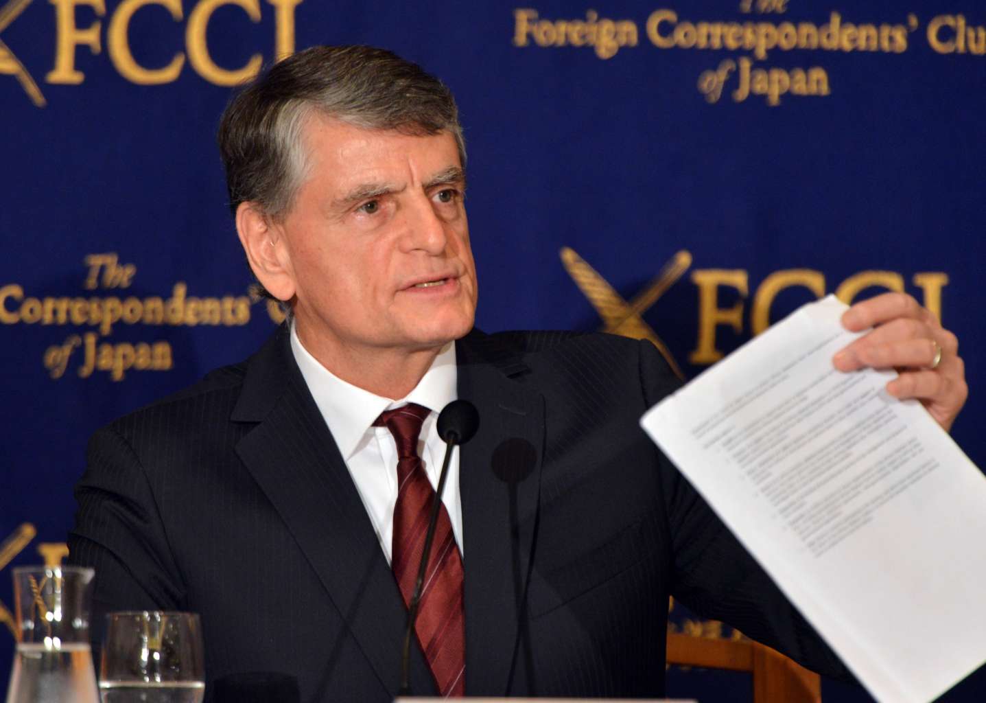 Environmental Investigation Agency president Allan Thornton speaking in Tokyo about the illegal ivory trade, on Dec 10, 2015.