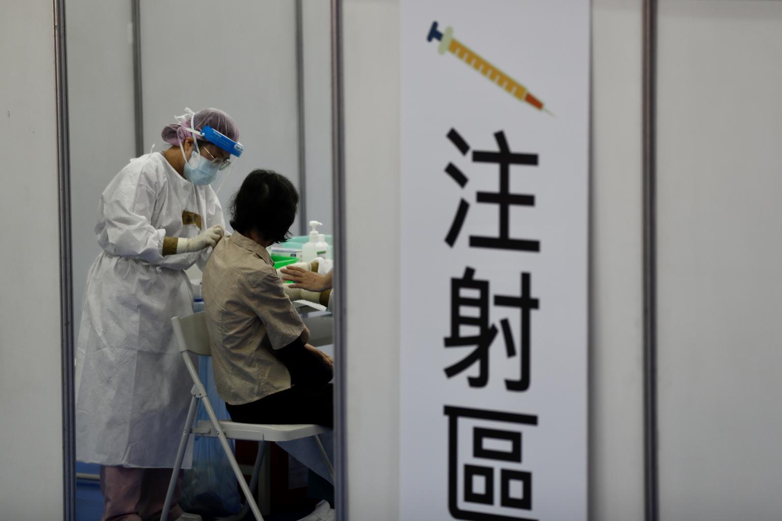 A resident receives an AstraZeneca vaccine in New Taipei City on June 15, 2021, after Taiwan received shots from Japan.
