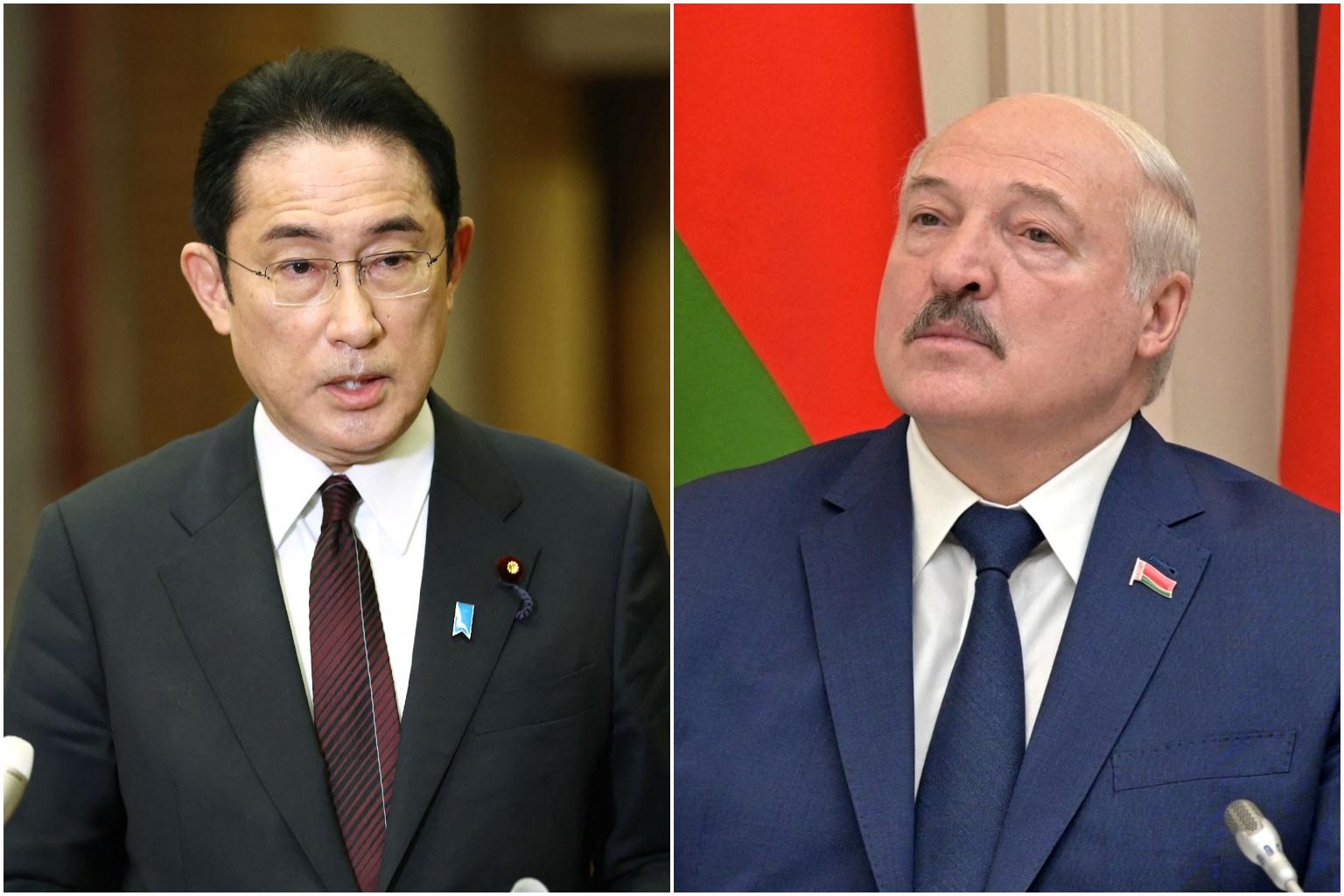 Japanese Prime Minister Fumio Kishida (left) said he will sanction Belarus' President Alexander Lukashenko and limit trade with Russia's central bank over Moscow's invasion of Ukraine.