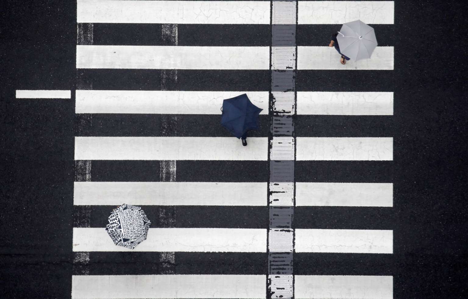 Pedestrians use umbrellas as they cross the street at a crosswalk in the rain in Tokyo on Aug 16, 2016.